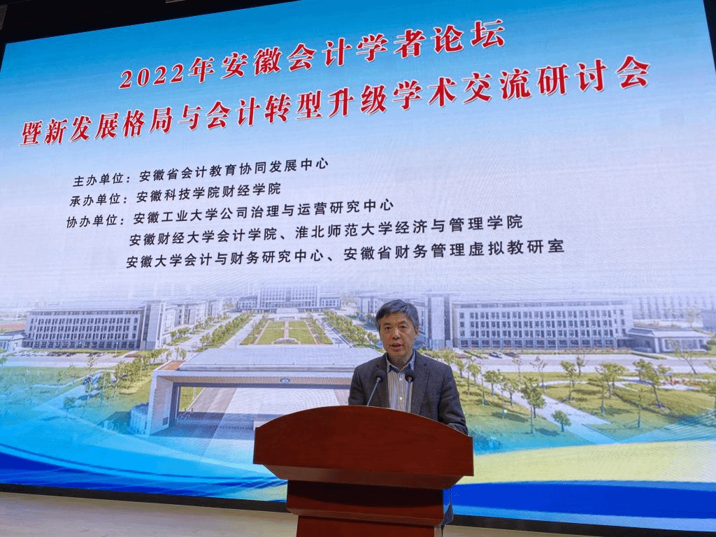开幕式中,蒋德勤简要介绍了学校的办学历史及学科发展、专业建设、教学与科研奖项等方面取得的成果。他指出,当前全国上下正深入学习宣传贯彻党的二十大精神,本次论坛对落实“构建新发展格局”、贯彻实施《会计改革与发展“十四五”规划纲要》等进行的理论研讨和实践探索,必将进一步推动会计学教育改革、加强学科建设、营造良好科研氛围,为安徽省经济和社会发展做出新的更大贡献!他预祝本次论坛取得圆满成功! 翟胜宝代表安徽省会计教育协同发展中心对我校精心筹备举办本次论坛表示衷心感谢!他表示,本次论坛旨在交流研讨高质量发展背景下,新发展格局构建与会计转型升级研究,将进一步推动安徽省会计学科专业发展和提高人才培养质量。