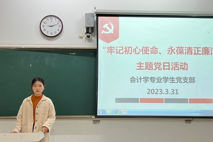 为进一步加强大学生党员廉洁教育,提高学生党员纪律观念、廉洁修身意识,3月31日,会计学专业学生党支部开展“牢记初心使命、永葆清正廉洁”主题党日活动。活动由会计学专业学生党支部书记丁雨妍主持。