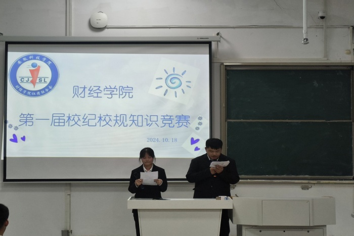 为加强2024级新生对校纪校规的认识和理解,提高学生的遵规守纪意识,财经学院社团联合会联合财务管理专业学生党支部于10月18日在致知楼A11成功举办2024级新生校纪校规知识竞赛。