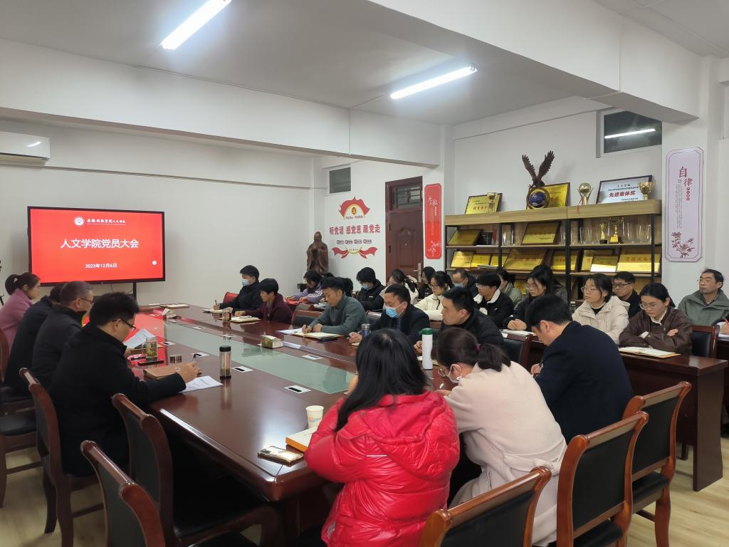 12月6日下午,人文学院党委在学知楼324会议室召开全体党员大会,补选中共九州平台第三次代表大会代表,开展全面从严治党宣传教育,会议由正处级组织员张严政主持。