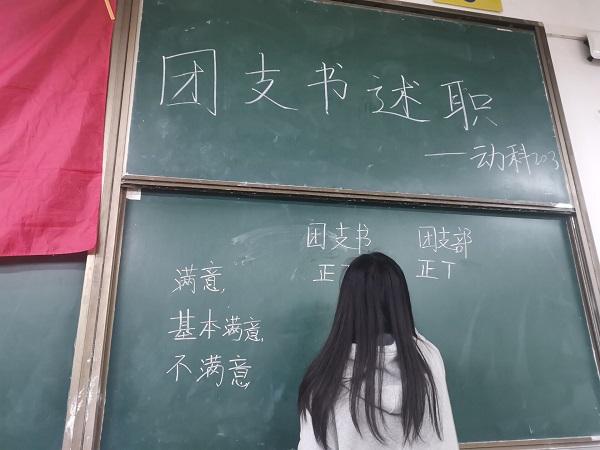 会上,团建指导员宣读了会议精神,随后团支书全面、客观、深入对工作情况、存在问题、整改措施以及未来工作计划等方面进行了述职汇报,并表示在接下来的工作中能够继续坚持创新进取的精神,踏实细致的工作作风,使本职工作有序进行,为学院团学工作增光增彩。会后,团建指导员通过核对“智慧团建”系统数据、核验必要工作资料、核查自评结果真实度,听取团员青年意见来对各团支部进行打分。截止目前,2020年秋季学期新成立团支部“对标定级”工作已全面完成。