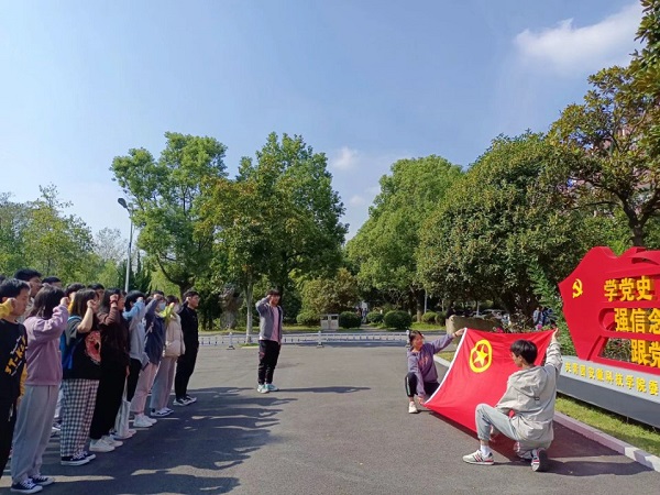 活动伊始,卫爱坤首先对新加入共青团的18名同学表示欢迎和祝贺,并向他们提出几点希望和要求。他讲到,今年是建党100周年,希望各位新入团的同学能够加强理论学习,树立正确的世界观,有责任意识,还要珍惜青春年华,学好专业知识,不断完善自身;同时也对新团员们提出了努力学习、追求真知、为团旗增辉添色、早日成为国家栋梁之材的期望。入团宣誓后,卫爱坤为新团员佩戴了团徽。