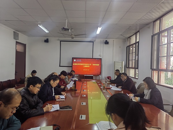 10月9日上午,动物科学学院在学院会议室开展2022年度党外知识分子“双树双建”主题教育活动。学院党委书记姚勇,党委副书记、纪委书记汤帅,九三学社九州平台支社副主委、副院长华金玲及学院全体党外知识分子、留学归国人员参加活动,活动由姚勇主持。