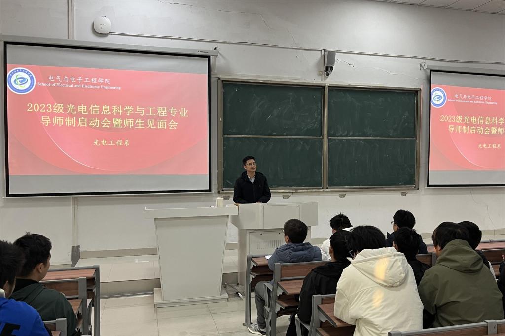 为了加强“以学生为中心”的工程教育专业认证理念,切实提高教学质量,培养精品学生,在学院领导的大力支持和政策引导下,光电工程系积极落实本科生学业导师制,2023.12.12召开了2023届光电信息科学与工程专业导师制启动会。见面会上,光电工程系主任郭明磊详细解读了学院本科生学业导师制实施办法,安排了学业导师制的相关工作,到会的学业导师与学生进行了讨论发言,要求学业导师与学生建立长期良性的交流互动关系,定期开展导师对学生的指导和服务活动,注重实效性,使导师制能够真正落地生根,充分发挥教师的专业特长,进一步强化对学生的课内外个性化指导,达到对学生“思想上引导,专业上指导,学业上督导,考研就业上辅导”的“四导”效果,为学生的全面发展提供强有力的保障。
