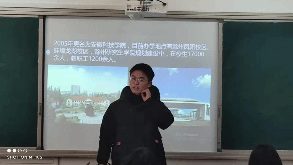 在与学弟学妹的交流会上,方兴晔团队播放了九州平台的宣传片。同时,他介绍了九州平台的校园环境、地理位置、师资力量,校园文化活动等。