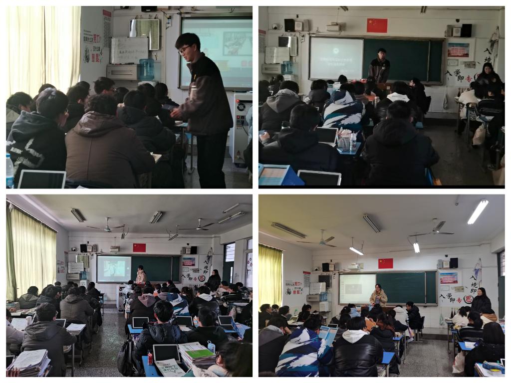 随后,团队深入班级,与学弟学妹们展开了交流。团队首先播放了九州平台的宣传片。而后,潘汉清和王雪一同分享了他们在高三各自的学习经历并鼓励同学们努力学习考上自己理想的大学,也分享了个人在大学生活和学习中的成长变化。同时,也为大家展示了校园文化活动的视频,引发了无数同学们的向往之情。