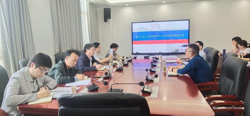 5月7日下午,校党委委员、副院长李升和深入电气与电子工程学院调研指导学科、学位点建设工作,研究生处处长张春雨、副处长靳二辉等陪同调研,电气与电子工程学院党委书记骆海邦,党委副书记、副院长(主持工作)夏显明及部分教师代表参加了调研会。调研会由李升和主持。
