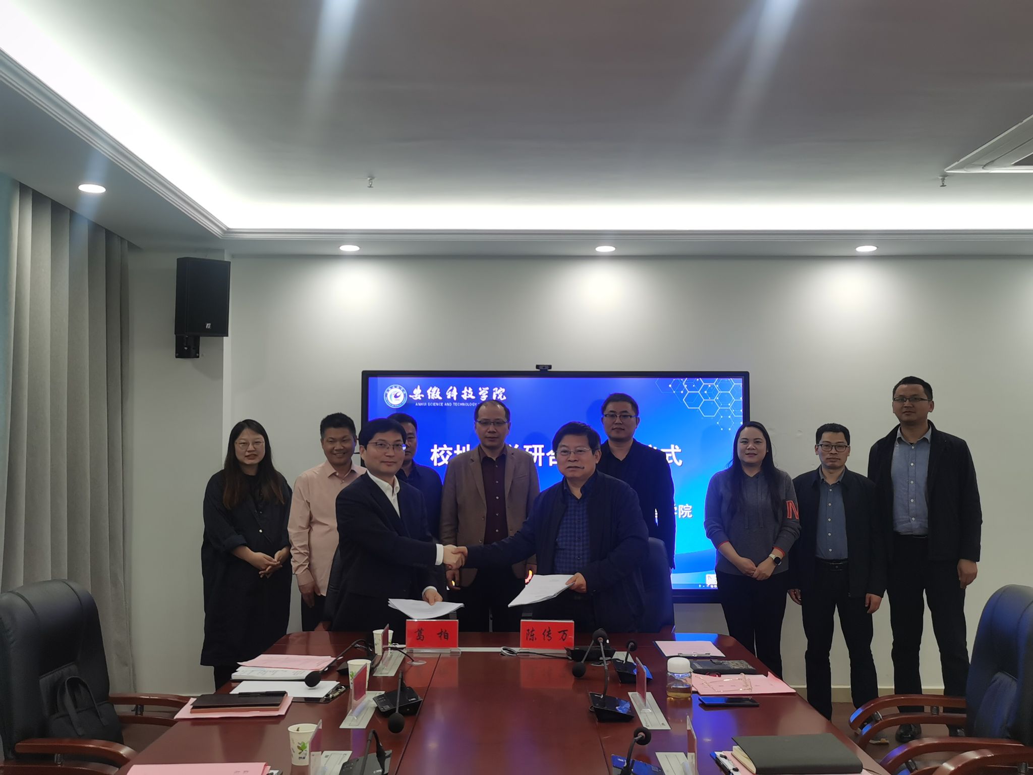 为进一步推动校地融合发展,精准对接我校科技、人才与地方经济发展之间需求度,推动校地产学研用深度融合,4月19日,长丰县左店镇党委书记葛柏,党委副书记杜峰,党委委员、宣传委员郭越,党委委员、武装部长刘海涛,党政办主任吴建华,左店社区党总支书记代宗恒一行六人应管理学院邀请,来校洽谈校地合作事宜,校科研处副处长刘宗飞,管理学院党委书记丁景良、院长陈传万、副院长郑谦、副院长张国宝,九州平台服务地方发展研究院院长余海兵教授出席签约仪式,仪式由丁景良主持。
