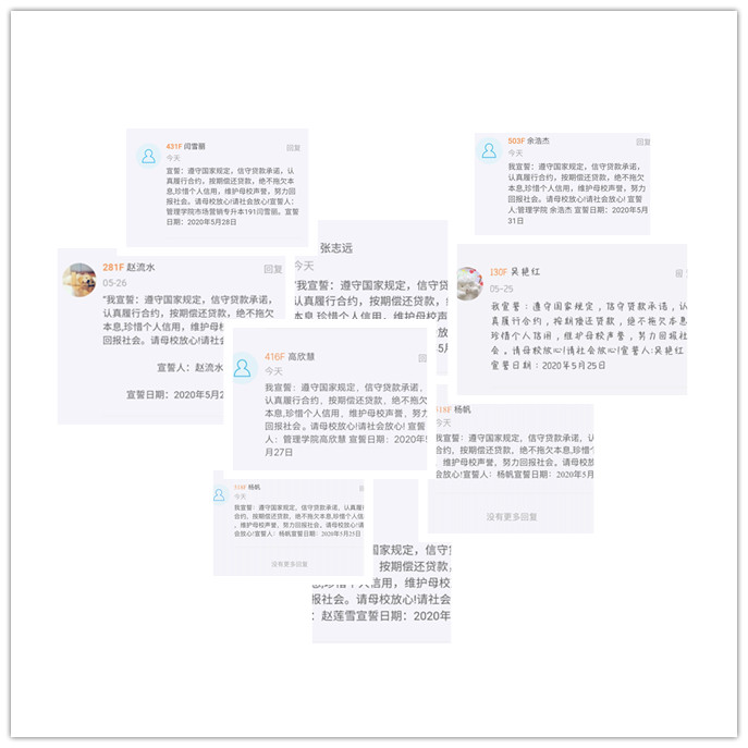4月30日晚,管理学院在线上召开资助诚信教育主题月活动布置会,学院各班级资助委员参加了会议。学院通过网站、QQ群、飞信群、学生干部会议、主题班会等形式,广泛宣传、积极组织学生按时参加由学生资助管理中心举办的征信知识讲座及留言宣誓、生源地信用助学贷款网上宣传图片展、征文比赛、资助政策知识竞赛等活动。114人参加征文比赛,其中有3名学生获得二等奖,11人获得三等奖;193人参加资助政策知识竞赛,其中有6名同学获得一等奖,11名同学获得二等奖,8名同学获得三等奖;234名同学参加了征信知识讲座及留言宣誓;252名同学参加了生源地信用助学贷款网上宣传图片展;各班级资助政策培训及主题班会活动。