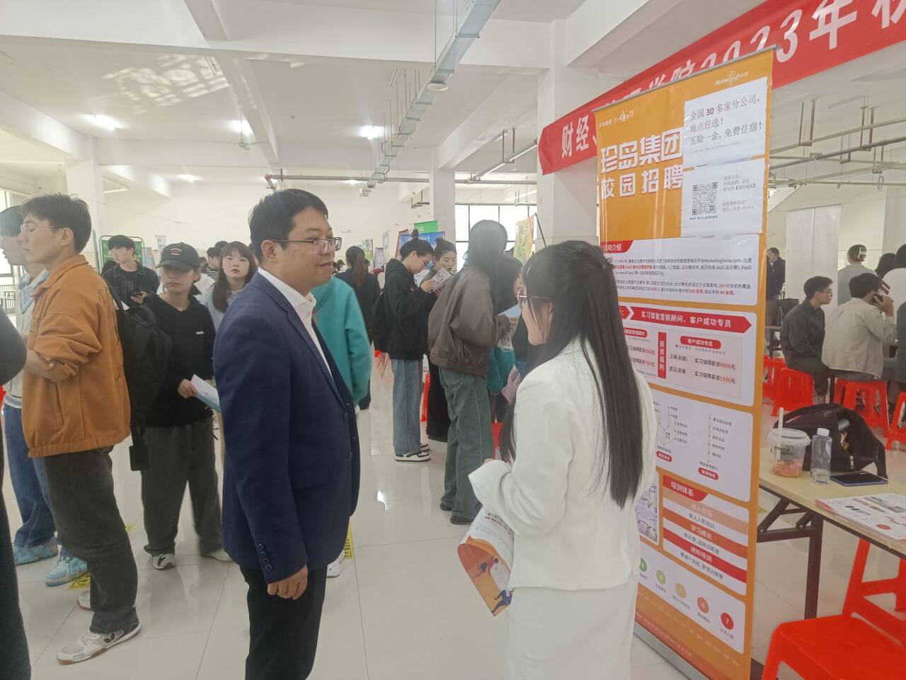 11月8日下午,由管理学院、财经学院联合举办的“就”在金秋“职”面未来2023年秋季专场双选会在龙湖校区招聘大厅如期举行,双选会共邀请了江苏华昌化工股份有限公司、安徽迎驾酒业销售有限公司、内蒙古伊利实业集团股份有限公司等50家企业来校招聘。