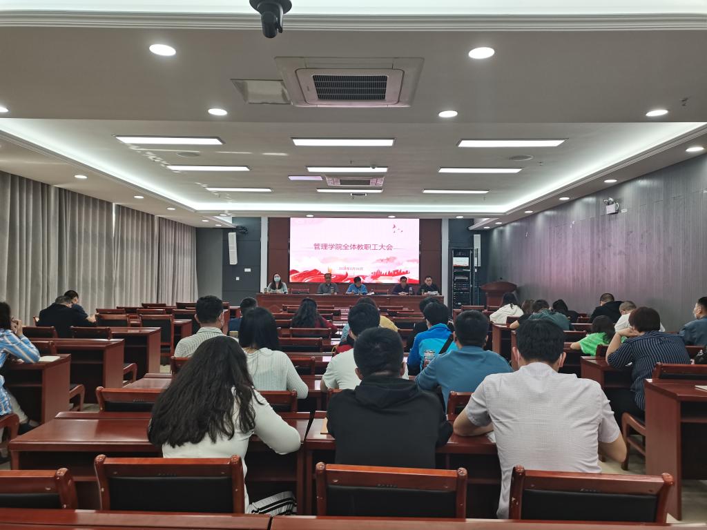 5月26日下午,管理学院在龙湖校区西附楼111会议室召开全体教职工大会暨审核性评估、专业认证工作推进会,学院党政领导及全体教职工参加了会议。会议由院党委副书记、院长陈传万主持。