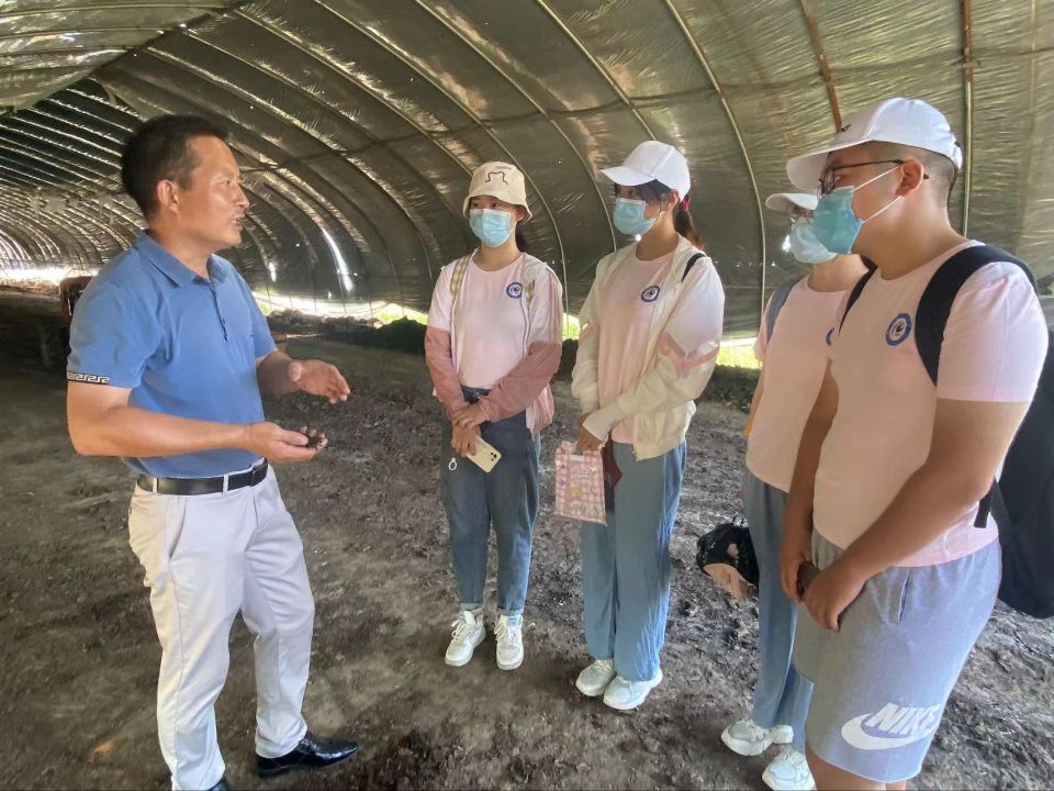 随后在梁恒的带领下,团队来到示范企业益磊养殖专业合作社,受到企业负责人赵坤的热情接待,36岁的他向大家详细介绍了自己返乡10年创业的艰辛经历,并带领团队参观了刚刚建成的集生态养殖、绿色种植、科学加工和种植体验、瓜果采摘一体的旅游观光项目。据梁恒介绍,赵坤还是地方有名的脱贫致富带头人,他积极同贫困户进行对接,免费提供蚯蚓种苗和葡萄苗,手把手将技术经验教给他们,带着村里百姓一起致富。在学习参观过程中,队员们走进现代化大棚,感受科技兴农的魅力,现场品尝了绿色水果,香甜可口,令大家赞赏不已。