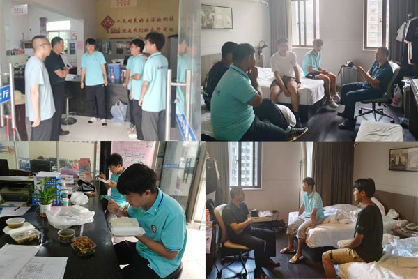 7月22日晚,张程一行又专门来到实践团学生住宿地,看望同学们的住宿情况,又与同学们进行了亲切交流,细致询问同学们身体状况、用餐情况等,特别强调同学们进行田间实践时一定要注意防暑、注意安全,谨记安全第一。张程强调,“行百里者半九十”,他要求同学们在接下来的实践中绝不能思想松懈,任务完成快的、质量完成高的要主动带带任务完成稍微迟滞的同学,大家团结协作,切实推动实践任务高质量完成。