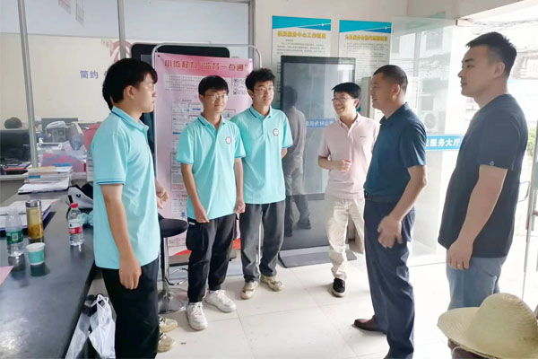 7月22日上午,机械工程学院党委副书记张程、机电与汽车工程实验中心主任司志远、机器人工程专业负责人曹波及辅导员张立亮一行4人驱车赴繁昌看望慰问实践团学生。