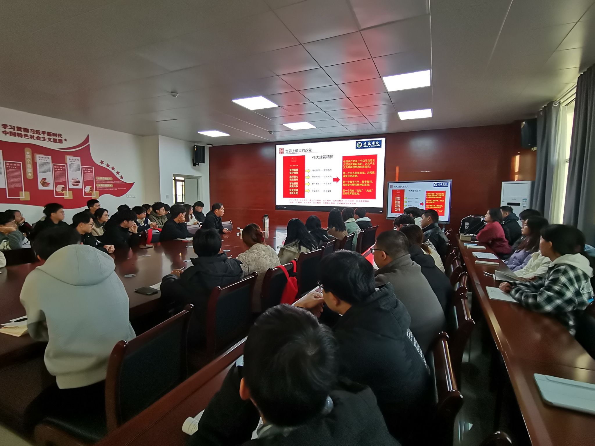 蔡安宁教授从介绍“新安旅行团”开始导入,引导同学们深刻认识中国共产党之大、理解中国共产党之强,自觉接受党组织的培养、教育和帮助,坚定听党话、跟党走的决心,做到心中有信仰,心中有祖国,始终坚守对党和国家的信仰。授课中,蔡教授列举了众多心中有信仰的科学家、仁人志士们,为了实现心中信仰,抛头颅、洒热血、隐姓埋名、身先士卒;同时结合建筑学院的专业情况,详细介绍了梁思成、林徽因、陈占祥、杨廷宝、吴良镛等建筑学界的专家们,他们心系祖国,拒绝国外大好前程,毅然决然留在祖国,为了祖国的建设和发展做出重大贡献,并强调新时代的大学生们也要胸怀天下、心系家国,将自己的人生目标与社会责任紧密联系起来,知重负重,主动担负起实现中华民族伟大复兴之重。最后,蔡教授希望同学们记住“你们是把握时代脉搏的奋进者、开拓者、领跑者,从来不是被时代浪潮裹挟前行的迷茫者、犹豫者、等待者”,鼓励同学们努力做堪当时代大任、心怀“国之大者”的安科人。