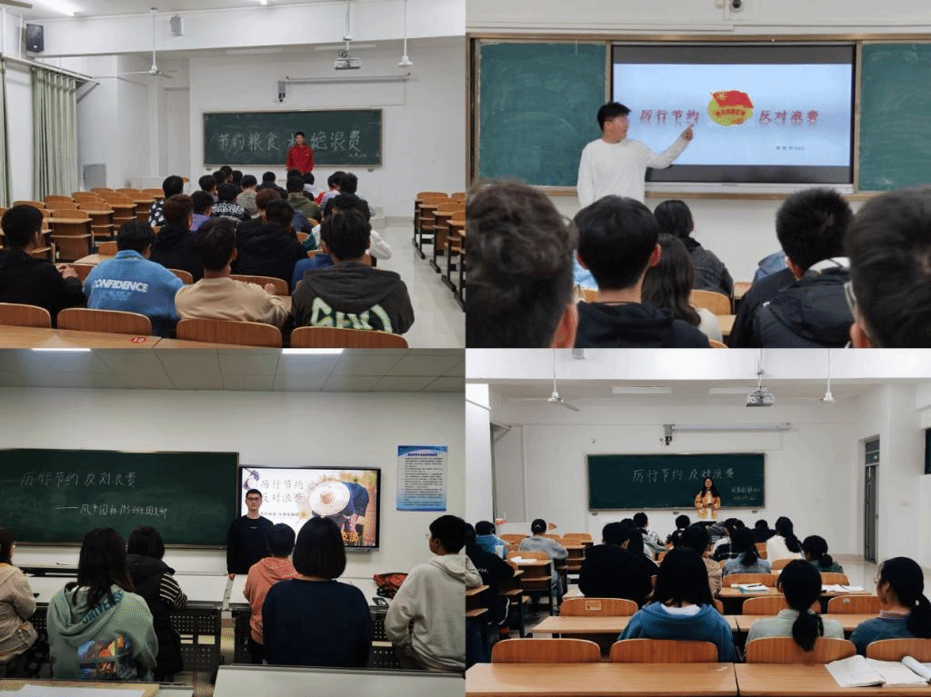 与此同时,建筑学院班级团支部积极开展“厉行节约 反对浪费”主题团日、主题团课,集中学习习近平总书记关于坚决制止餐饮浪费行为的重要指示精神,观看“春种秋收,每一粒粮食都来之不易”短视频,交流讨论节约小窍门,发出“厉行节约 反对浪费”倡议,争做“光盘行动”的践行者、示范者和传播者,一起向餐饮浪费行为说不。