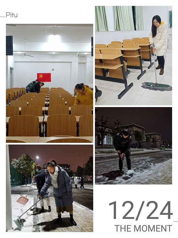 同学们都在互帮互助中感受集体的力量,同学们认真清扫,良好的精神风貌为寒冷的冬日增添了一-份温暖。与此同时,致知楼外面负责清理积雪的同学也完成了工作。整个致知楼周围都焕然一新起来,志愿活动完美结束。