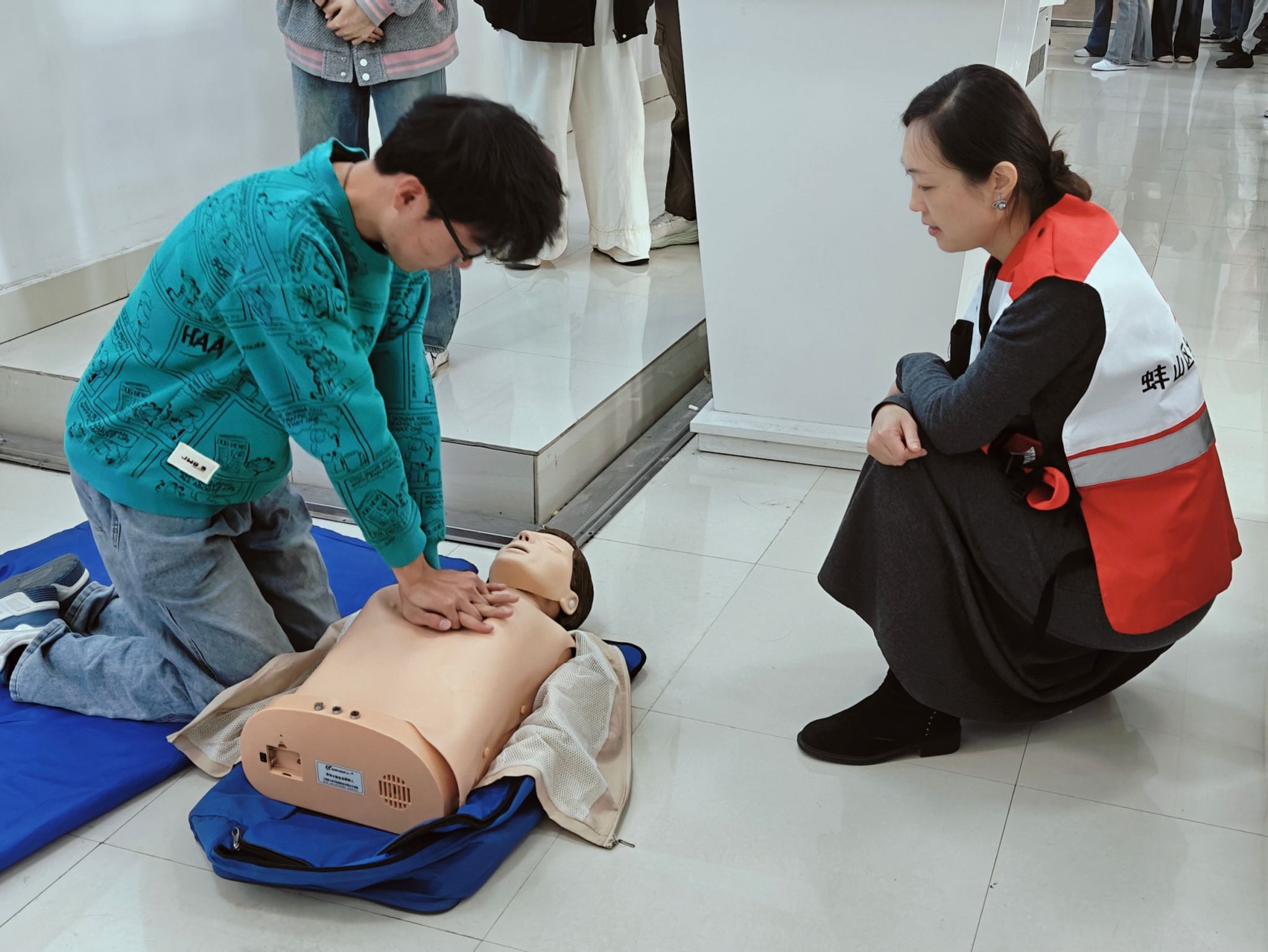培训活动以“人人学急救  急救为人人”为主题,采用理论知识与实践操作相结合的方式。培训内容涵盖了心肺复苏、自动体外除颤器(AED)的使用以及气道异物梗阻处理等关键的救护技能。在培训过程中,学生们展现出了浓厚的学习兴趣和积极性。在主讲人的悉心指导下,学生们逐一在人体模型上进行心肺复苏实操练习。从判断现场环境安全、请求拨打120救援电话,到确定按压位置、掌握按压力度、及时进行人工呼吸抢救,学生们认真对待着每一个步骤。