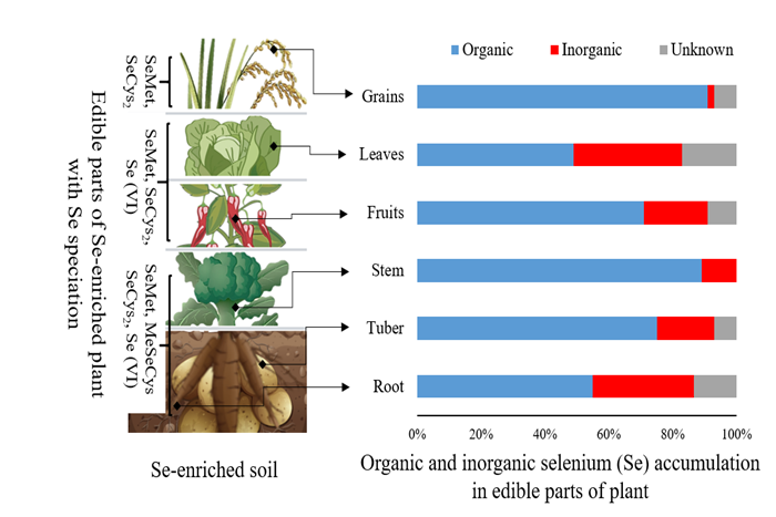 Journal of Agricultural and Food Chemistry发表的论文探讨了准确定量测定富硒作物中硒化学形态以及硒形态转化过程对人体健康的重要性。重点介绍了有机和无机硒在不同作物和可食用部位的分布,强调了代谢过程在硒同化中的作用。该研究为了解不同作物的硒富集能力提供了新的思路。这一信息对旨在提高作物硒含量的生物强化方法优化是有着重要价值。本研究论述了植物吸收硒的代谢机制,指导优化硒生物强化过程,以确保植物有效地将无机硒转化为更具生物可利用性的有机形式,通过选择易富集有机硒的作物品种,制定硒生物营养强化的最优策略,以解决缺硒地区人群硒摄入不足的问题。(特约通讯员:刘晓丹 审核:陈丰)
