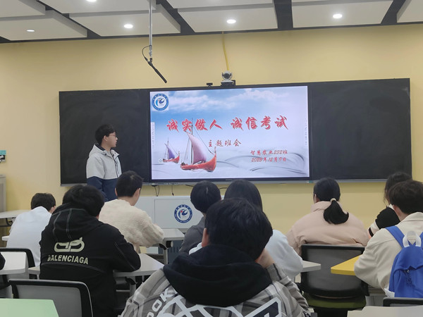 为了培养学生的诚信品质,创造良好的考试环境。12月9日上午,智慧农业232在智慧教室B301室召开以“诚实做人,诚信考试”主题班会。会议由班长吴兴春主持。