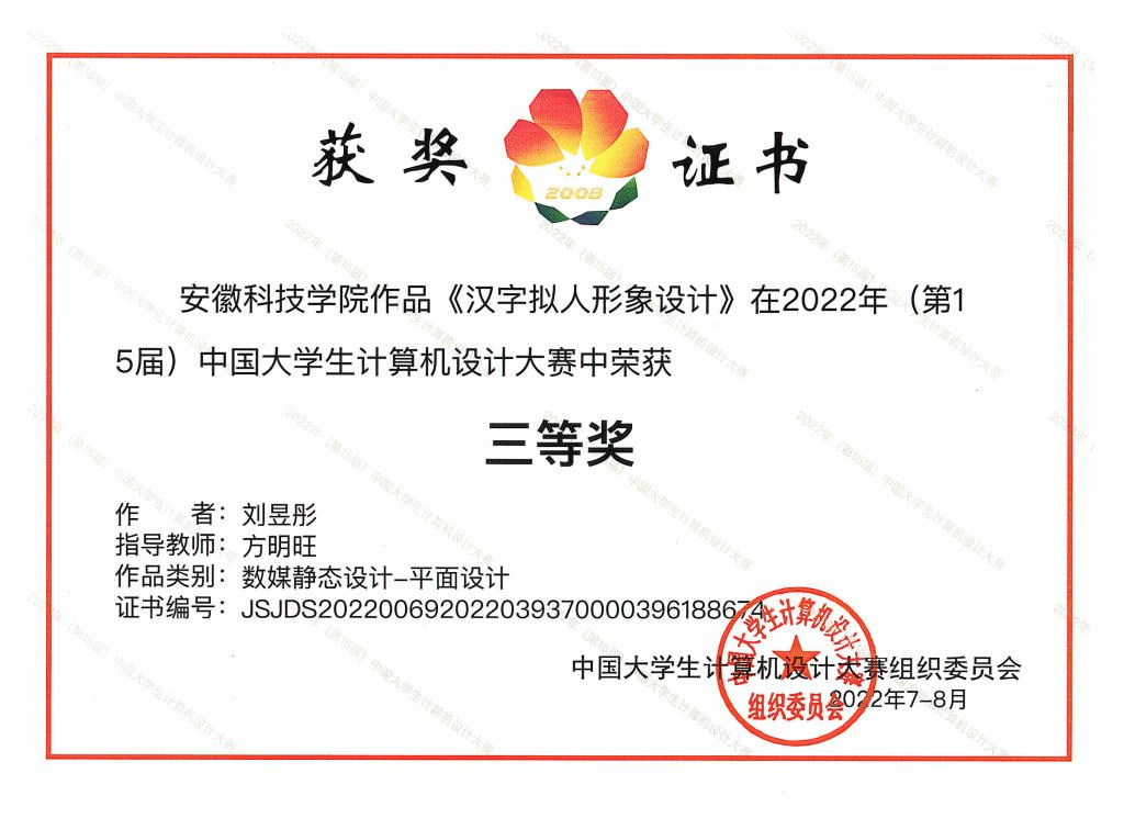 经过两个月激烈的角逐和专家评审,人文学院2支参赛队伍从全国1376支队伍中脱颖而出,李慧、汤佳慧同学的平面设计作品《云端绘中国》荣获二等奖,刘昱彤同学的平面设计作品《汉字拟人形象设计》荣获三等奖。