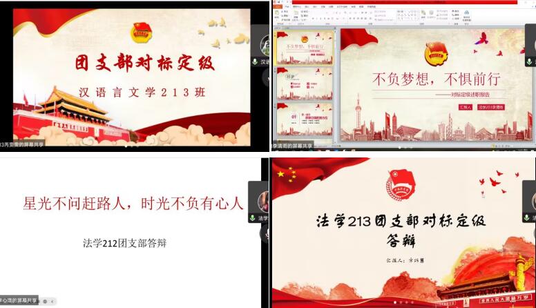 为进一步加强人文学院各班团支部的基层组织建设,更好完成基层团支部“对标定级”工作,12月22日,人文学院2022年度团支部对标定级答辩会于线上举行。本次答辩会邀请人文学院张意茹、外国语学院邹宇、农学院李斌、资源与环境学院夏莞页、生命与健康科学学院安金泽五位团学干部担任评委,共15个团支部参与本次答辩。