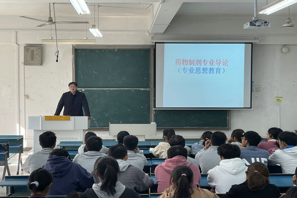 根据学院新生入学教育方案安排,为加强新生专业思想教育,激发专业学习兴趣,10月25日上午,学院邀请专业课教师熊友谊博士在新知楼A102教室为2021级药物制剂专业学生开展专业认知教育讲座,辅导员王传林、刘国祥和2021级药物制剂专业全体同学聆听本次讲座,讲座由王传林主持。