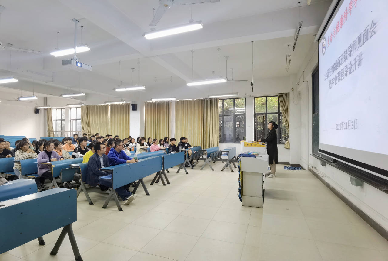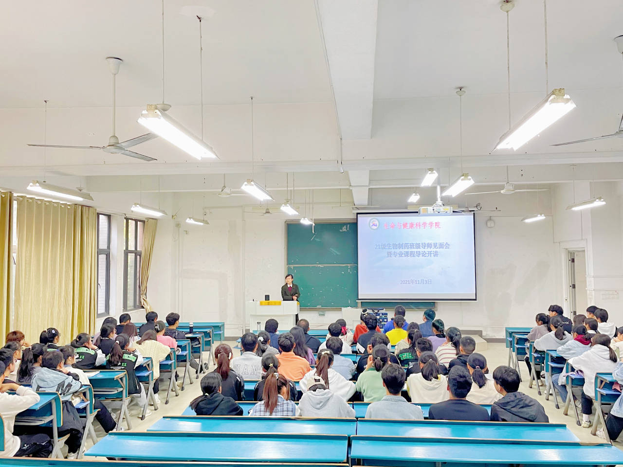 11月3日下午,生命与健康科学学院在新知楼B101举行2021生物制药专业导师见面会暨专业《课程导论》开讲。2021级生物制药3个班级专业导师汪雁博士、徐荣华博士、张维博士以及2021级生物制药90位新生参加了班级导师见面会。会议由生命与健康科学学院2021级生物制药专业辅导员邓艳萍主持。