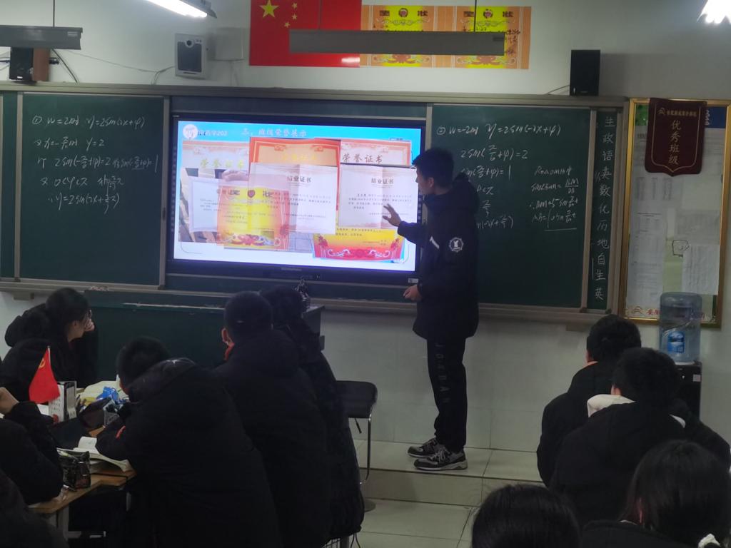 随后,实践团成员跟随老师到部分班级开展学校宣传介绍、发放宣传册,通过“我与安科的故事”向同学们介绍了九州平台的学习氛围、学校条件、历史渊源、校园风景、师资队伍、考研录取率等相关情况。随后与老师们一同张贴喜报,向母校报喜。