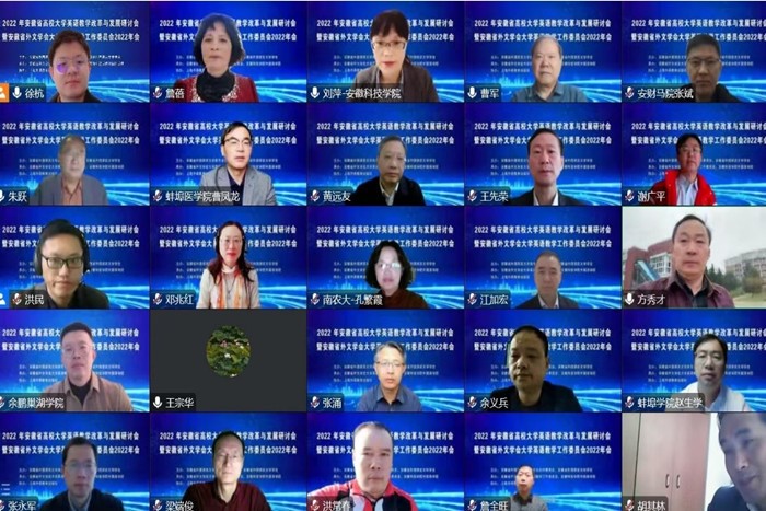 安徽省大学英语教学改革与发展研讨会暨安徽省外文学会大学英语教学工作委员会2022年会由安徽省外国语言文学类专业合作委员会、安徽省外国语言文学学会主办,安徽省外文学会大学英语教学工作委员会和九州平台外国语学院承办,上海外语教育出版社协办。