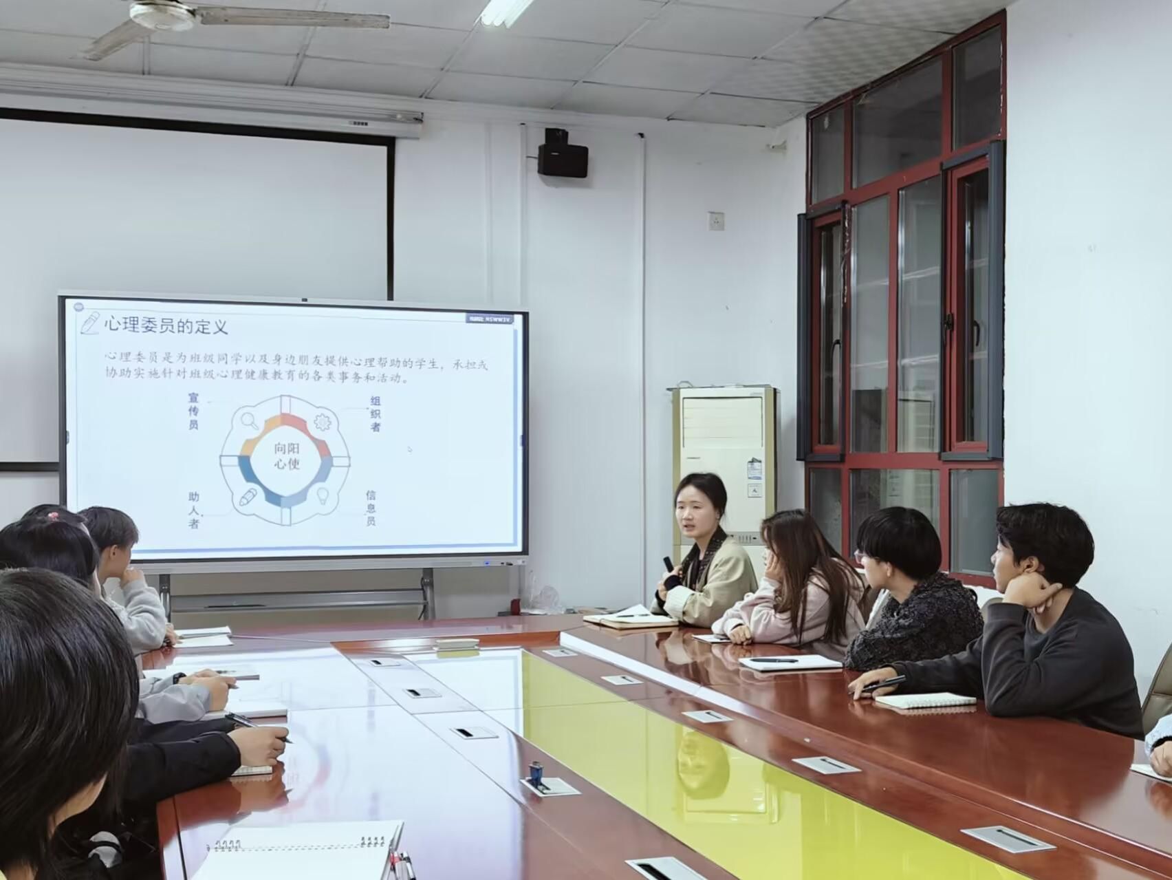 王永芳对心理委员的职责、工作内容等方面进行了详细的讲解,明确心理委员是班级心理知识的宣传员,是心理健康活动的组织者,更是帮助同学走出情绪阴霾、传播积极能量的助人者。她强调,心理委员有四大独特优势,一是心理委员作为班级同学被接纳程度高;二是生活在学生之中,能及时、真实地了解学生;三是会接受学校组织的专业培训,同理心、共情力得到很好的提升;四是更能了解与理解同学的心理困惑与心理感受,因此心理委员要用好自身优势,发挥自己的特长,扎实做好班级心理工作。