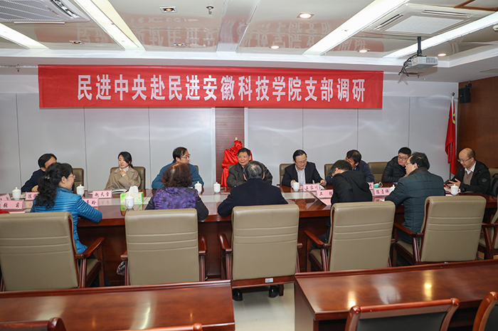 12月8日下午,全国人大常委会委员、监察和司法委员会副主任委员、民进中央副主席兼秘书长高友东率领民进中央调研组来到民进九州平台支部调研,省政协副秘书长、民进省委专职副主委王容川,民进安徽省委秘书长高国友,民进蚌埠市委主委秦志华,我校党委书记蒋德勤等陪同调研。