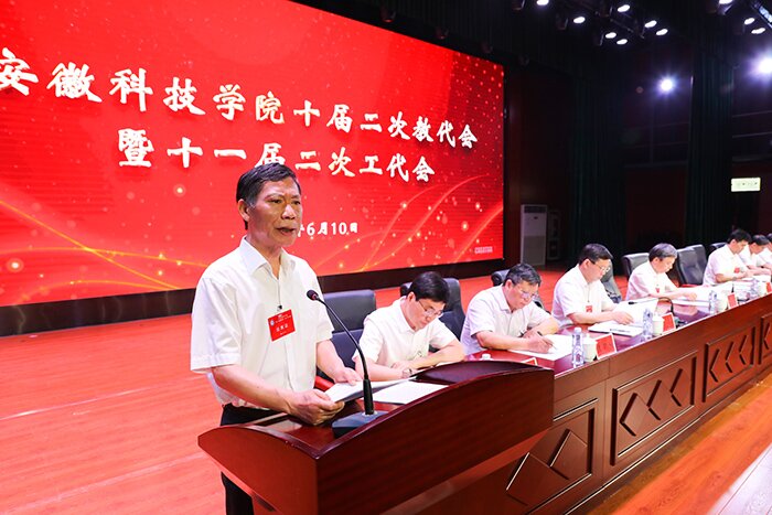 6月10日上午,我校十届二次教代会暨十一届二次工代会第一次大会在大学生活动中心胜利召开。校党委书记蒋德勤,党委副书记、院长李震,党委委员、副院长黄远友,党委委员、纪委书记、监察专员王强,党委委员、副院长李升和出席会议,与全体代表、列席代表、特邀人员们齐聚一堂,共商学校发展大计。大会由黄远友主持。