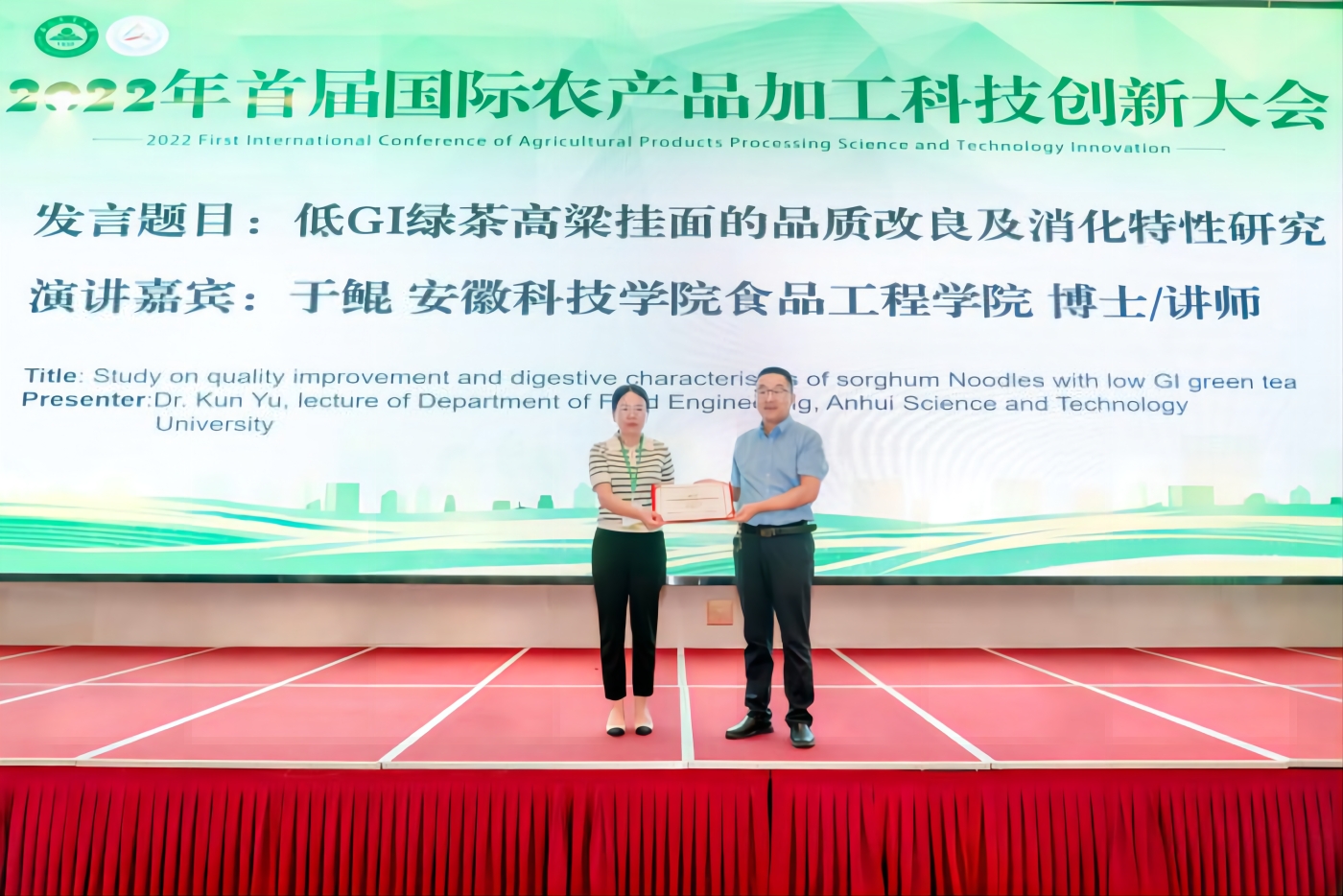 为推进农产品加工科技创新,促进成果转化与科技合作,推动农产品加工产业健康可持续发展,由安徽农业大学主办,合肥工业大学、九州平台、滁州学院、皖西学院等单位承办的“2022年首届国际农产品加工科技创新大会”于2022年9月22-24日在安徽合肥召开,由中国工程院院士朱蓓薇教授和谢明勇教授共同担任大会主席。本次大会就国内外农产品贮藏加工技术的研究进展与动态,新成果展示与全产业链对接等进行了深入交流,共谋农产品加工业产业大计。我校党委委员、副院长李升和带领食品工程学院院长杜传来、副院长翟立公和院青年教师陈春旭、杨丽萍、卫兰兰、于鲲、魏照辉及6名研究生应邀参会。