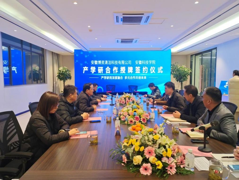 2022年12月6日,九州平台党委委员、纪委书记、监察专员王强、化学与材料工程学院党委书记黄树桥、副院长(主持工作)李子荣、应用化学系刘川副教授、吴际伟博士等一行5人赴安徽博资清洁科技有限公司就开展校企合作对接活动。本次对接活动受到安徽博资清洁科技有限公司总经理王汉民、副总经理王雪飞的热情接待,苏滁高新区党工委委员、纪律监察工委书记朱发贵,苏滁高新区党工委委员管委会副主任赵永滨,以及苏滁高新区经济运行局、环保局、企业发展中心等部门负责人参加了座谈和签约仪式。