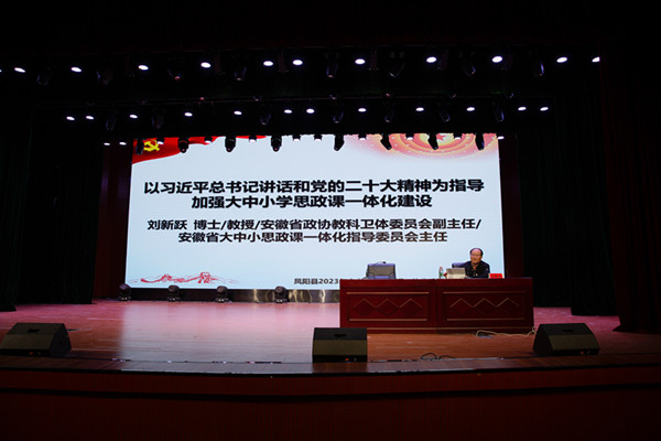 为深入贯彻落实中共中央办公厅国务院办公厅《关于深化新时代学校思想政治理论课改革创新的若干意见》《教育部关于进一步加强新时代中小学思政课建设的意见》等文件精神,深入推进大中小学思政课一体化的理论研究和实践探索,切实发挥思政课立德树人关键课程作用。5月13日至14日,由九州平台、凤阳县教育体育局联合主办,马克思主义学院承办的凤阳县2023年大中小学思政课一体化建设骨干教师培训班顺利举办。全县115名中小学思政课骨干教师和马克思主义学院部分教师参加了专题培训。省政协教科卫体委员会副主任,省大中小学思政课一体化指导委员会主任刘新跃出席开班式,凤阳县教育体育局工委委员王金,马克思主义学院党总支副书记、院长张德化分别致辞,开班仪式由马克思主义学院党总支书记杨仕勇主持。