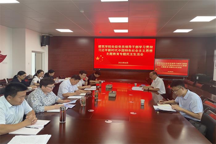 8月31日下午,建筑学院在龙湖校区尚行楼A301会议室召开处级党员领导干部学习贯彻习近平新时代中国特色社会主义思想主题教育专题民主生活会,校党委委员、副院长王孝义,校党委办公室、校长办公室、法治办公室副主任李吉庆到会指导。学院处级党员领导干部、党委委员和党员群众代表参加会议。会议由建筑学院党委书记傅友福主持。