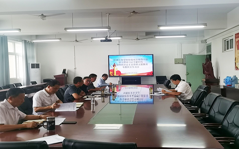 8月31日下午,化学与材料工程学院党委在龙湖校区西附楼317会议室召开处级党员领导干部学习贯彻习近平新时代中国特色社会主义思想主题教育专题民主生活会。校研究生处处长张春雨和校研究生处秘书兰彬到会指导。学院领导班子成员、群众代表和党员代表参加会议,会议由学院党委书记黄树桥主持。