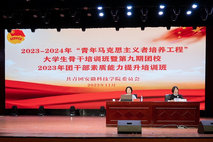 11月1日,我校2023年团干部素质能力培训班、2023-2024年“青年马克思主义培养工程”大学生骨干培训班暨第九期团校在凤阳校区大学生活动中心举行。合肥学院马克思主义学院副教授闪茜菁应邀作《新时代党的青年工作的根本遵循——学习贯彻习近平总书记关于青年工作的重要思想》的专题报告,会议由校团委书记张聪主持。