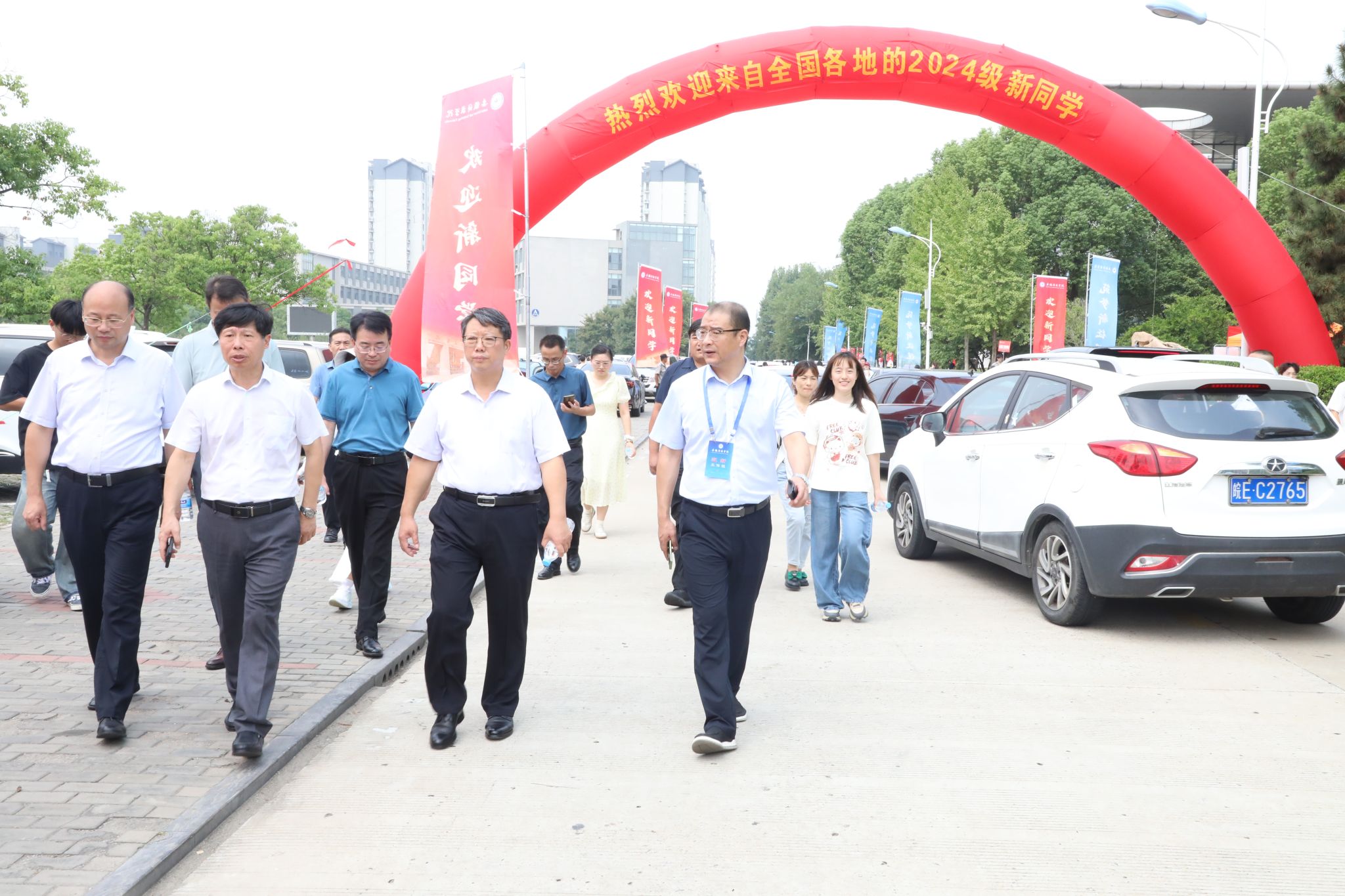校党委书记时伟,党委委员、副院长李升和,党委委员、副院长王孝义,党委委员、副院长赵伟峰高度重视迎新工作,在有关单位(部门)主要负责人陪同下亲临各个院系和职能部门的迎新接待站,仔细询问新生报到注册的各项流程,详细了解迎新各项工作进展情况,听取各单位(部门)有关迎新工作的汇报,慰问现场工作人员和志愿者们,看望新生及新生家长。