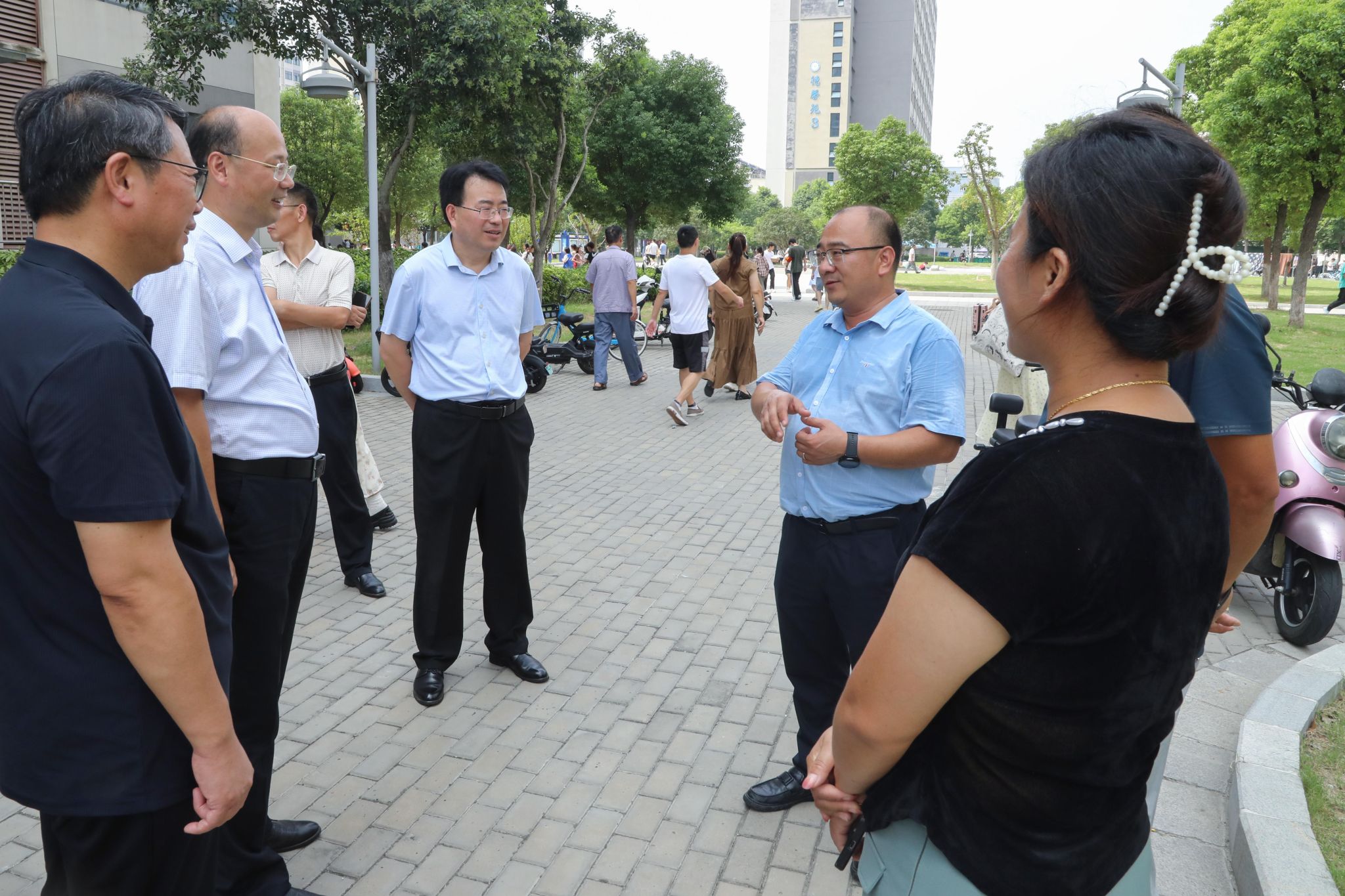 “老家是哪里的?”“乘坐什么交通工具来校的?”“食堂饭菜还吃得惯吗”“饭菜价格还合适吗?”……在实地了解新生入校情况后,校领导依次来到食堂、家长休息区、学生宿舍区等地与新生及家长亲切交谈,逐一解答了家长心中的疑惑,并勉励新生们自立自强,尽快转变角色,及早融入大学生活。