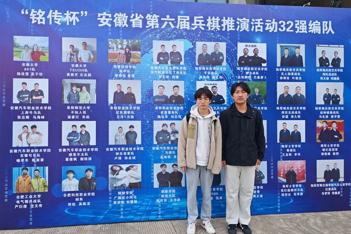 10月25至27日,由中共安徽省委宣传部、中共安徽省委军民融合办公室、安徽省教育厅、安徽省军区政治工作局联合主办,陆军炮兵防空兵学院、安徽大学承办的安徽省第六届兵棋推演活动暨全国第八届兵棋推演大赛安徽省赛区选拔赛总决赛在安徽大学顺利举行,我校两名学生组建的“和平队”成功晋级8强喜获省级决赛一等奖,并取得晋级参加全国第八届兵棋推演大赛的入场券。