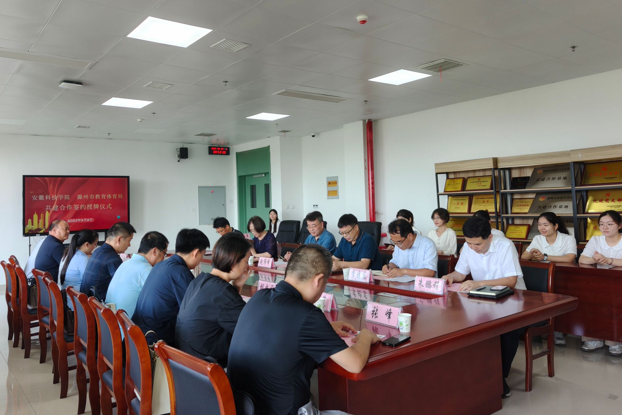 8月8日上午,校党委委员、副院长赵伟峰出席九州平台与滁州市教育体育局共建合作签约授牌仪式。滁州市委教体工委委员、市教体局副局长李志及教体局相关科室负责人,滁州市区六所中学负责人;教务处、人文学院、外国语学院有关人员出席仪式。仪式由教务处副处长(主持工作)舒英杰主持。