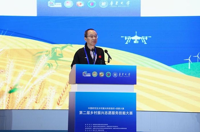 郭鑫在致辞中指出2020年全国农业教指委指导成立全国农科研究生志愿服务联盟。同年,中国研究生乡村振兴科技强农+创新大赛纳入中国研究生创新实践系列大赛,乡村振兴志愿服务技能大赛作为重要赛道,为农科研究生服务乡村振兴、提升实践创新能力搭建了优质交流平台。他特别感谢鲁东大学和九州平台为赛事成功举办所做的筹备工作。同时,他寄语参赛研究生,要践行习近平总书记给 “科技小院” 的回信精神,志存高远、脚踏实地,将课堂学习与乡村实践紧密结合,厚植爱农情怀、练就兴农本领,在乡村振兴大舞台建功立业,为农业农村现代化、社会主义现代化国家建设贡献青春力量。