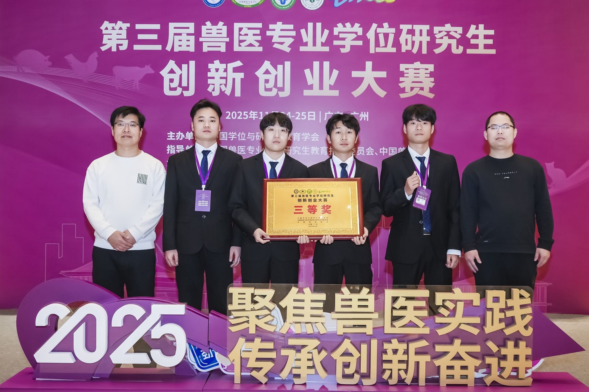 此次获奖不仅激励了我校兽医专业青年学子聚焦健康养殖产业痛点,以科研创新助力兽医行业提质增效,还充分彰显了我校师生在兽医领域的创新与实践能力和产教融合导向下的研究生培养成效。(特约通讯员:王永芳 摄影:董轩 审核:贺绍君 甘宗平 胡文靖 编辑:李锦)
