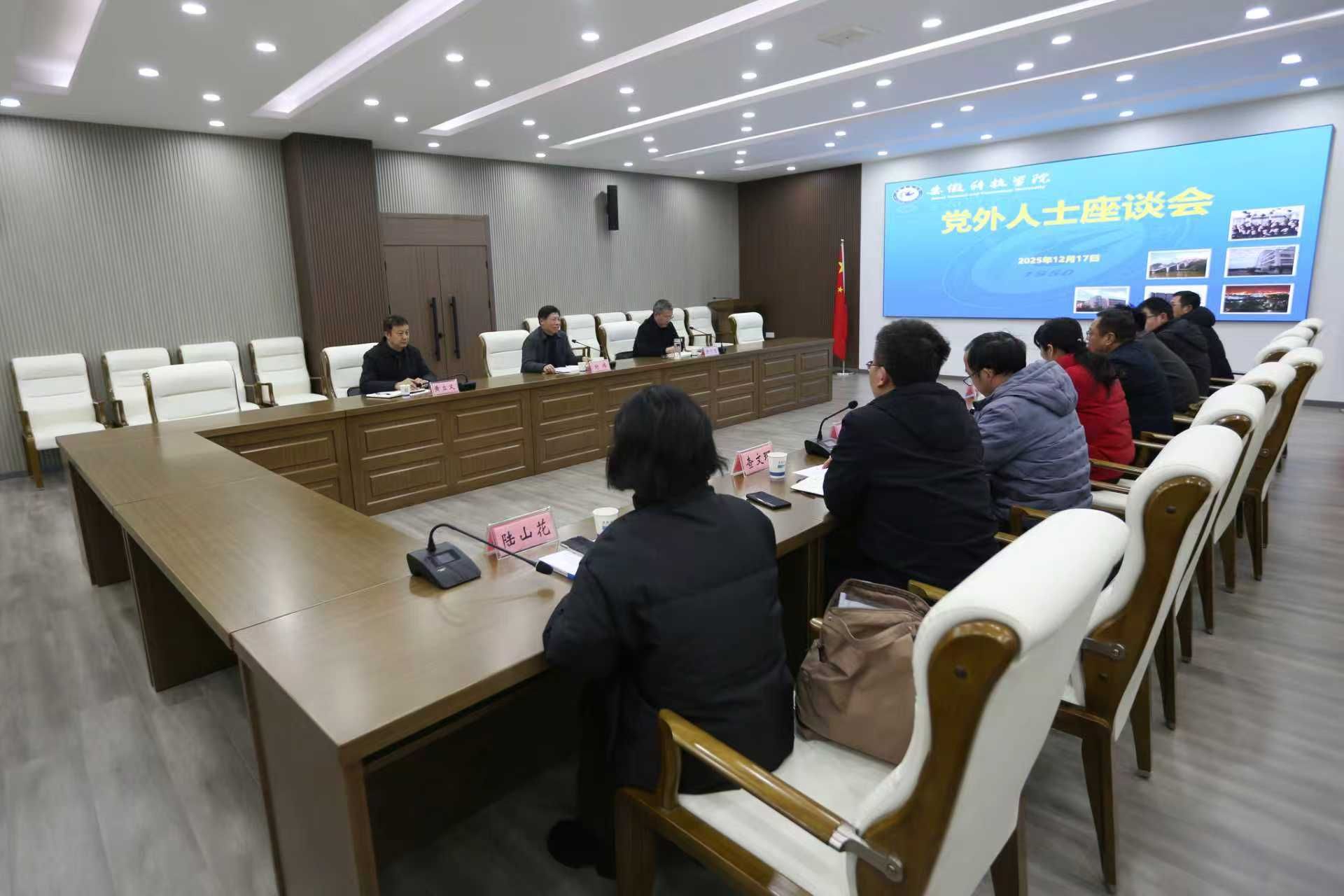 12月17日下午,学校在凤阳校区图书馆B多功能厅召开党外人士座谈会。党委书记时伟出席会议并讲话。党委副书记曹付忠主持会议。党委统战部、民盟九州平台总支、民进九州平台支部、九三学社九州平台支社,校知联会、校侨(留)联负责人、农工党党员、无党派人士代表等参加会议。