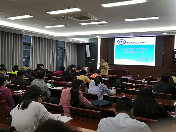 5月13日下午,信息与网络工程学院在西辅楼111会议室召开全体教职工会议。信息与网络工程学院副院长余宏杰、副处级辅导员韦乃学及全体教职工参加会议。会议由余宏杰主持。