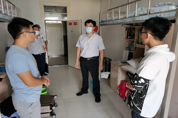 8月29日晚,校党委委员、组织部长、学院党总支书记钱锐,学院党总支秘书张程等深入学生宿舍看望慰问返校学生。