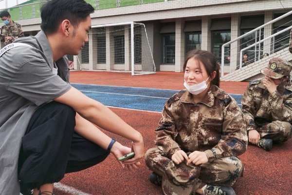 在采访中,动物科学203班的张野说道:“今天是大学军训的第三天,最深切体会到军训特点的身体部位就是我的脚,因为站军姿、齐步走、立正、稍息,这些都和脚密切相关的,所以这天最辛苦的是它了,可是辛苦得很值得。”
