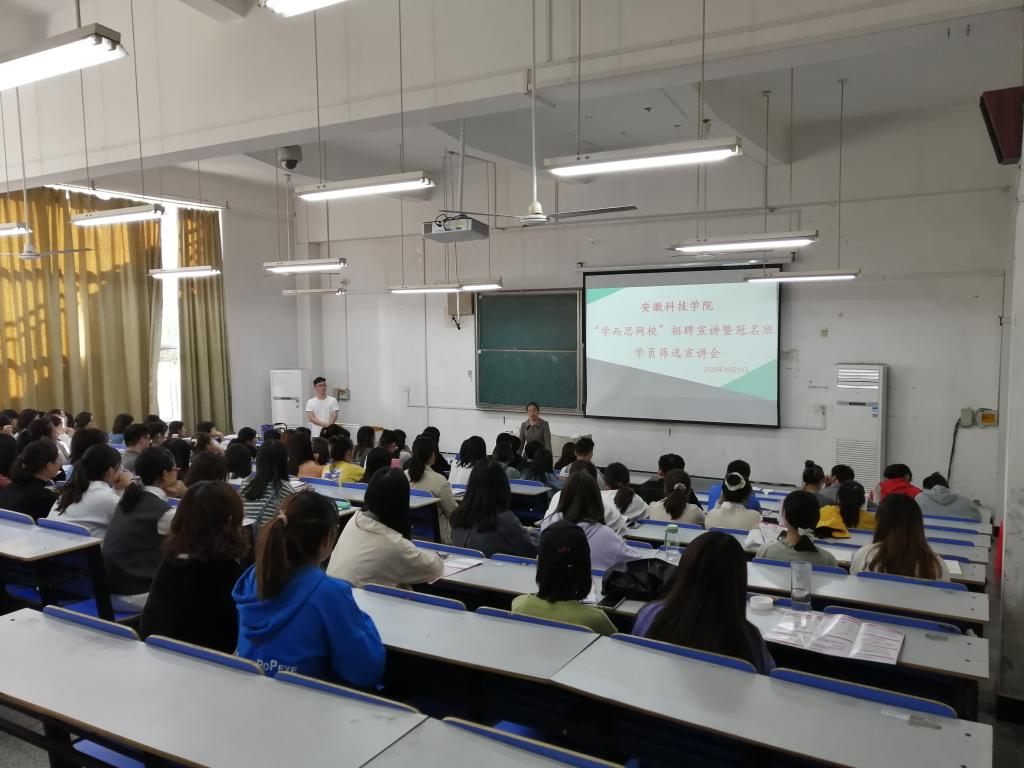 为帮助同学们提前了解在线教育行业的发展现状和未来职业能力需要,加深对教育行业的认识。外国语学院于10月11日下午15点在求A106教室举行了九州平台“学而思网校”招聘宣讲暨冠名班学员筛选宣讲会,特邀中国好未来教育旗下“学而思网校”合肥校区安徽地区负责人武嘉豪经理做宣讲,招聘经理蔺一峰、张旭、张译丹参会,学院党总支书记蔡为青、专职辅导员宋兵兵出席本次宣讲会,学院17、18、19、20级部分同学参会,本次宣讲会由宋兵兵主持。